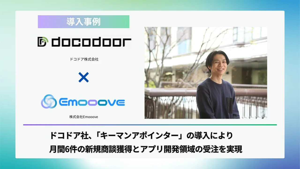 そこで、意思決定者に直接アプローチできるチャネルの活用と、グループ会社での成功実績を評価いただき、Emoooveの「キーマンアポインター」を導入いただきました。