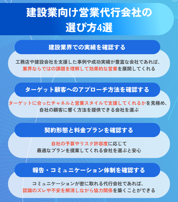 建設業界で豊富な実績を持つ営業代行会社の中から、特におすすめの14社を厳選しました。