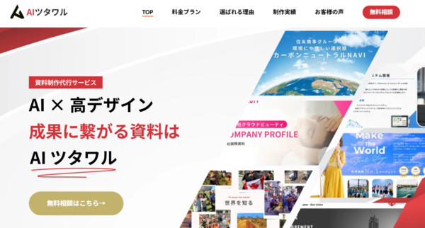 | AIツタワル | ![]() | 公式 | 詳細 | ・AIとプロのデザイン力を融合 ・最短2営業日のスピード納品 ・属人化しない資料設計 |