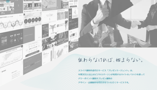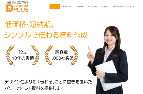 | サービス内容 | Web・PowerPoint・動画・パンフレット等1,000件以上の制作実績を持つプレゼン資料作成代行サービス |