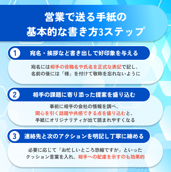 手紙の本文では、相手の課題やニーズに寄り添った内容を盛り込みます。