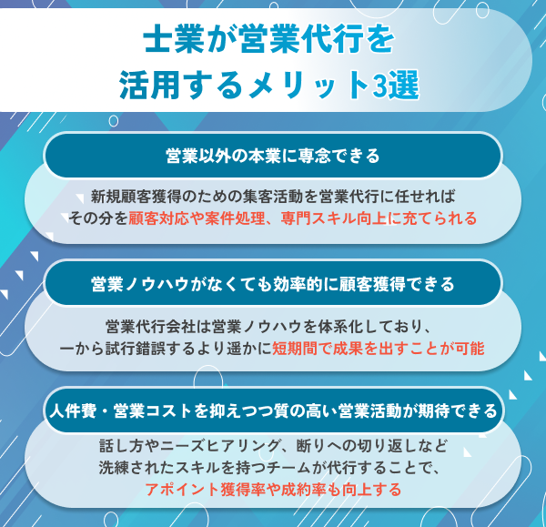 士業事務所にとって営業代行サービスは、集客力を飛躍的に高めつつ本業に集中できる魅力的な手段です。