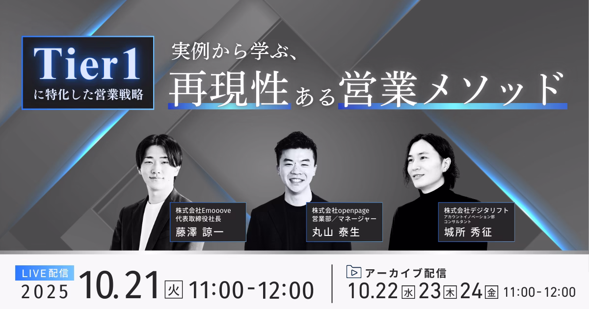 本ウェビナーでは、Tier1開拓の成功プロセスを体系的に学べる実践的なノウハウをお届けいたします。